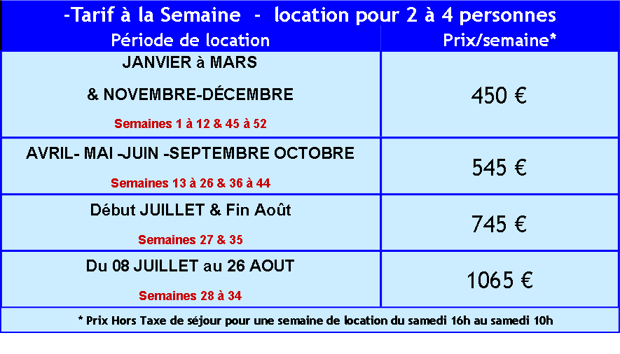 - Location de draps et linge de maison (nous consulter) - Forfait ménage de fin de location : 60€ |